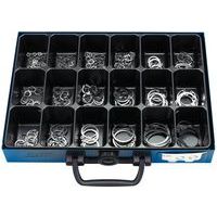 | Productnaam | Assortimentsdoos met stalen zekeringsringen voor assen en boringen, Materiaal: Staal, Aantal stuks: 283 |