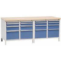 | Productnaam | Complete werkbank Modul 200 met lades, Max. belasting: 500 kg, Totale hoogte: 810 mm, Totale breedte: 2000 mm |
