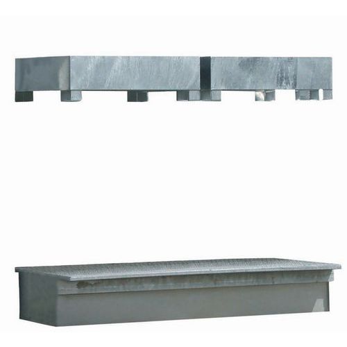 | Productnaam | Gegalvaniseerd stalen opvangbak, Vermogen (aantal vaten): 8, Roostermat: ja, Inhoud opvangbak: 1000 L |