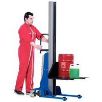 - Deze stapelaar is half-elektrisch: de beweging is manueel en het heffen elektrisch.