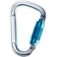 - Deze karabijnhaak met draai-sluiting heeft een opening van 20 mm voor het bevestigen van een verbindingsapparaat zoals een valstoplijn aan een verankeringspunt.