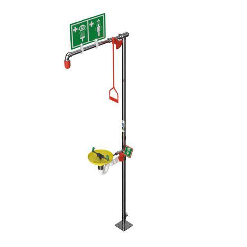 | Productnaam | Veiligheidsdouche met oogdouche en bak, Materiaal leiding: Roestvrij staal, Douchekop materiaal: Nylon |