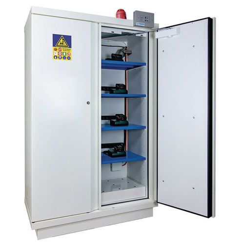 | Productnaam | Veiligheidskast voor de opslag van lithium accu's, Materiaal: Staal, Totale hoogte: 1950 mm |