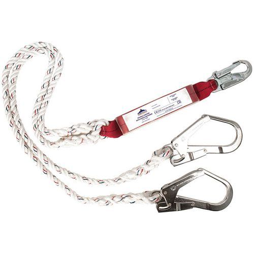 | Technische gegevens | Polyamide gevlochten koord met schokdemping en karabijnhaken |
