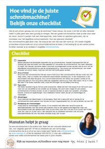 De ene schrobmachine is de andere niet. Moet het een robuuste alleskunner zijn, voor dagelijks gebruik? Of heb je voldoende aan een eenvoudige schrobmachine die je zo af en toe eens nodig hebt? Om je op weg te helpen heeft Manutan een Checklist schrobmachine samengesteld die je kan downloaden.