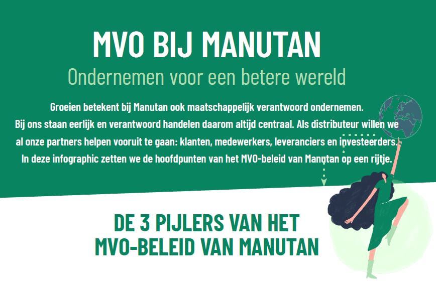 In deze infographic zetten we de hoofdpunten van het MVO-beleid van Manutan op een rijtje.