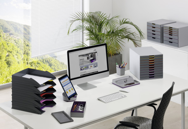 De ideale workflow creëer je pas echt als je al je spullen binnen handbereik hebt. Deel je bureau daarom slim in en leg de spullen die je veel gebruikt in je buurt. Opbergbakjes helpen je hierbij een handje om de boel bereikbaar én overzichtelijk te maken. En door te kiezen voor bakjes in verschillende kleuren houd je de boel beter uit elkaar én oogt de boel lekker vrolijk.