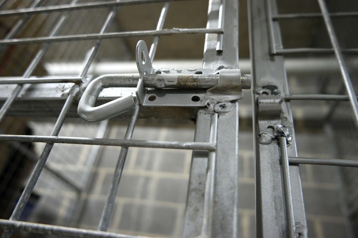 De deur van de rolcontainer vergrendel je door middel van een hangslot. Zo zijn producten altijd veilig tijdens transport |