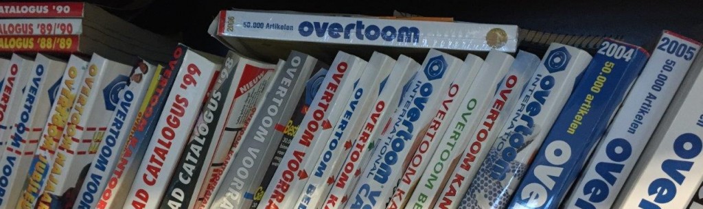 ‘Overtoom, prijscourant’ prijkt er op een met ringbanden gebonden 204 pagina’s dik boekje uit 1961, inclusief 1 pagina indexwoorden, antwoordkaart en fl. 2,50 spoedorder toeslag bovenop spoor- en posttarieven. Met vermelding van 6 telefoonlijnen én nachttelefoon (24/7 customer care bestond wel degelijk). Geweldig.