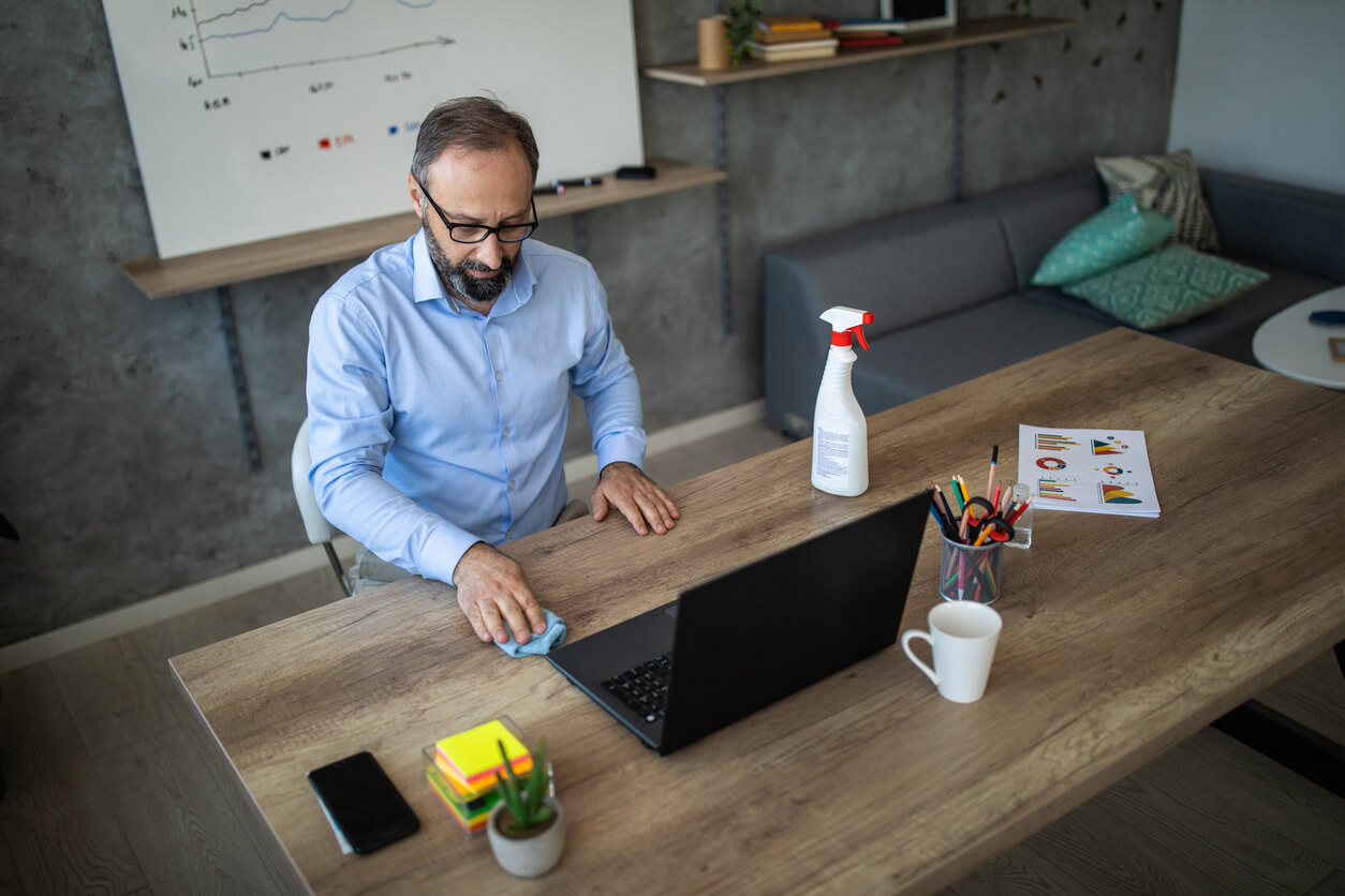 Laat je medewerkers zoveel mogelijk met persoonlijke werkmiddelen werken en laat ze regelmatig schoonmaken. Denk aan schrijfmaterialen, smartphones, toetsenborden en computermuizen. Stel desinfecterende doekjes ter beschikking.