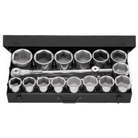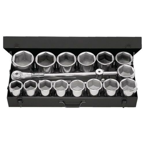 | Productnaam | 6-kantdoppen 1 van 58 tot 100 mm, Aantal stuks: 19, Type nr.: M.441E, Schroef uitsparing: Binnenzeskant |