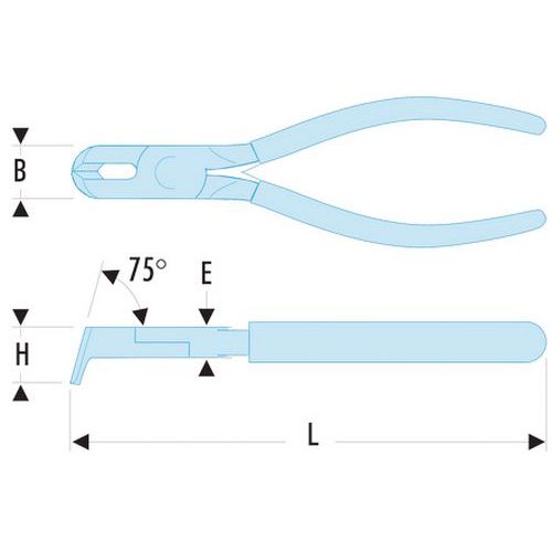 | Productnaam | 75° gebogen kniptang voor kunststof, Lengte: 150 mm, Type nr.: 396, Snijvermogen: 9 mm, Gewicht: 145 g |