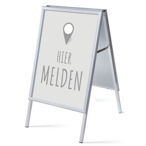 - Het A-bord is een aluminium constructie in de vorm van een letter ‘A’, met een 32 mm dik profiel, dat duurzaam, roestvrij en stabiel is.