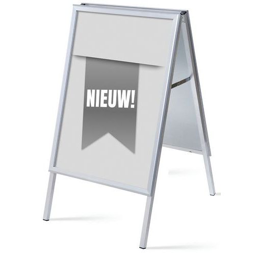 - Het A-bord is een aluminium constructie in de vorm van een letter ‘A’, met een 32 mm dik profiel, dat duurzaam, roestvrij en stabiel is.