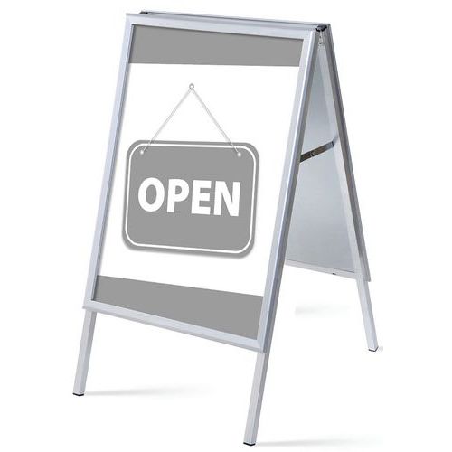 - Het A-bord is een aluminium constructie in de vorm van een letter ‘A’, met een 32 mm dik profiel, dat duurzaam, roestvrij en stabiel is.