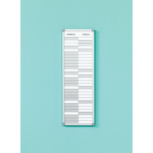 Aan- en afwezigheidsbord, Breedte: 24 cm, Kleur frame: Grijs, Type: 10 posities, Hoogte: 29 cm, Kleur: Grijs