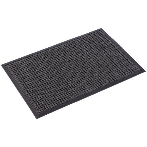 Ultra-bestendige mat met 4 verhoogde rubberen randen rondom. Deze rand functioneert als een opvangbak en kan tot wel 6 liter water per vierkante meter vasthouden. Het verhoogde wafelpatroon werkt uitstekend voor het verwijderen en vasthouden van vuil en vocht. De randen en onderzijde van verstevigd rubber zorgen voor een maximale bestendigheid. De noppen aan de onderzijde voorkomt het verschuiven van de mat op elk type vloer én zorgt voor ventilatie zodat de vloer onder de mat kan drogen. Constructie met velours bouclégaren van Decalon®-vezels en zool van natuurlijk rubber.