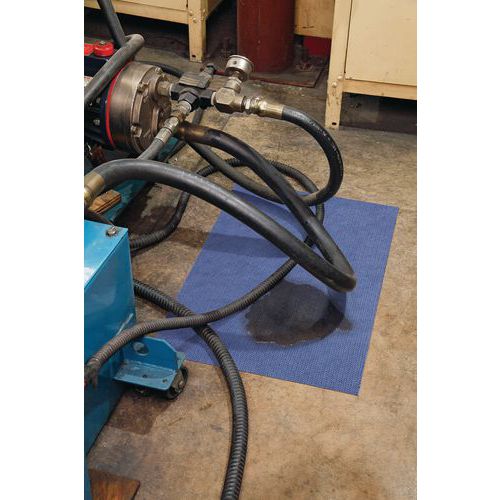 Absorberende mat met zelfklevende onderzijde voor een stevige, maar eenvoudig verplaatsbare aanhechting. Absorbeert oliën, water, koelvloeistoffen en oplosmiddelen. Geschikt voor druk voetgangersverkeer en voor het passeren van voertuigen. Ideaal in zones met een hoog risico op vallen of struikelen