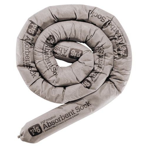 Flexibele kousen voor in de hoeken en aan de onderkant van machines om lekkende vloeistoffen te absorberen. Absorbeert de meest voorkomende industriële vloeistoffen: water, olie, oplosmiddelen, koelvloeistof en meer. Groot absorptievermogen, zelfs bij verzadiging. Omhulsel van polypropyleen voor een maximale scheurweerstand. Grijs gekleurd zodat vlekken niet opvallen. Voor dagelijks onderhoud