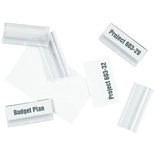 - Wordt op de profielrand van de hoezen gestoken om de informatie te personaliseren en te segmenteren.