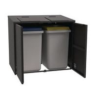 - Overkapping voor afvalcontainers met drie wanden, deuren en vloer. Ontworpen met een dak, dubbele draaideur en vloer van staalplaat. Voorzien van een volledig afsluitbare ergonomische klep met handige handgreep. De klep is uitgerust met pneumatische veren om dichtklappen te voorkomen. Het frame van de overkapping is voorzien van een verankeringssysteem en bestaat uit 4 staanders met voetplaten.