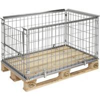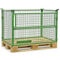 - Palletkist met halve wand neerklapbaar voor eenvoudig laden en lossen.