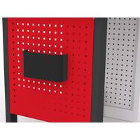 - Gemakkelijk te installeren: zeer snelle bevestiging aan de geperforeerde zijkanten van de trolley of aan een geperforeerd wandpaneel (ophangsysteem meegeleverd).