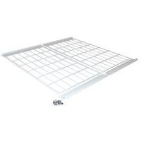 - Een haakse steun is gemonteerd op de rand van het onderste en bovenste legbord en het rooster wordt geschroefd.