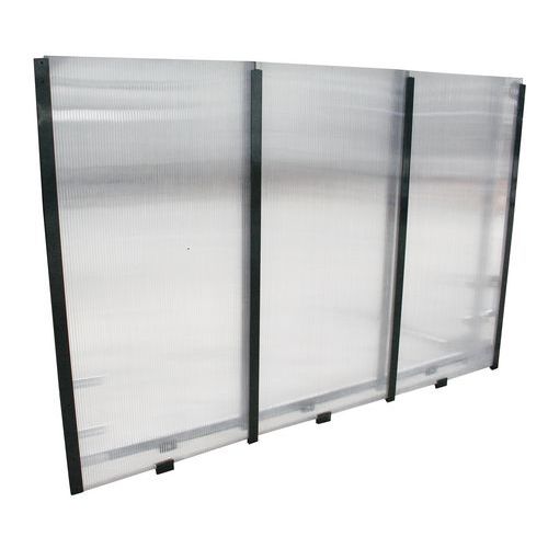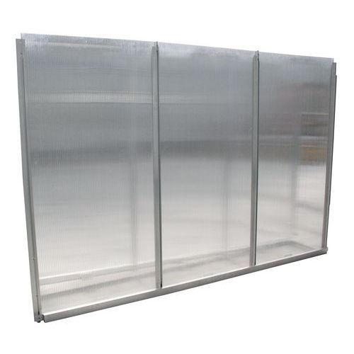 Wand van polycarbonaat kanaalplaat (10 mm) die in de speciale aluminiumprofielen worden geplaatst.