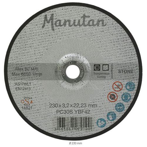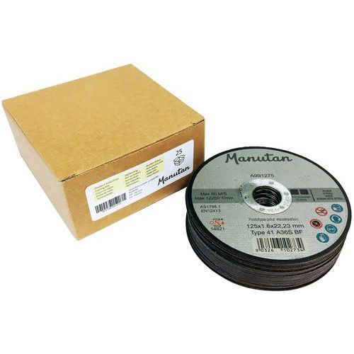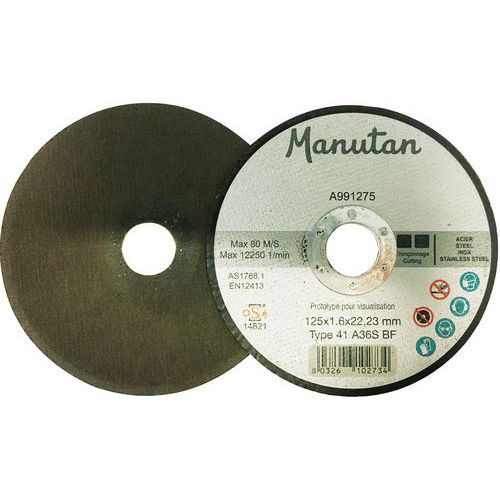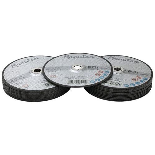 Platte afbraamschijf voor alle materialen - Manutan - Manutan Expert Versterkte afbraamschijf voor het snijden of afbramen van metalen en materialen op draagbare en vaste machines. Gemaakt met schurende middelen en bindmiddelen, geschikt voor snelle en hoogwaardige snijwerkzaamheden.