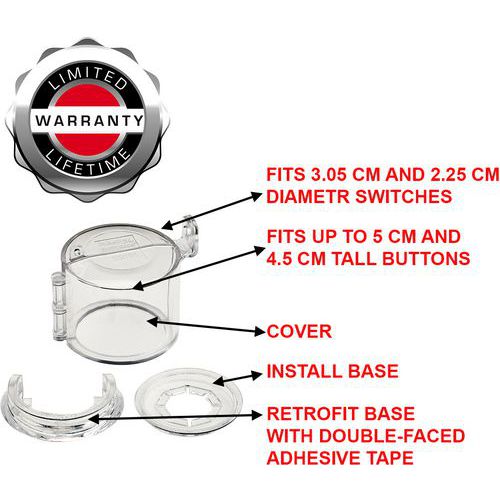 - Geschikt voor schakelaars met een diameter van 30,5 mm en 22,5 mm en drukknoppen met een diameter tot 50 mm en een hoogte tot 45 mm.
