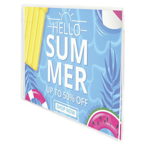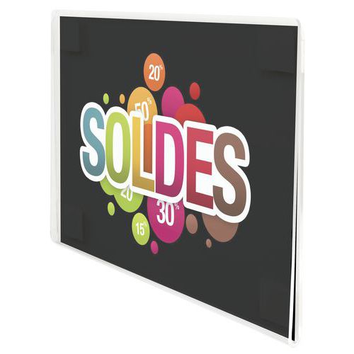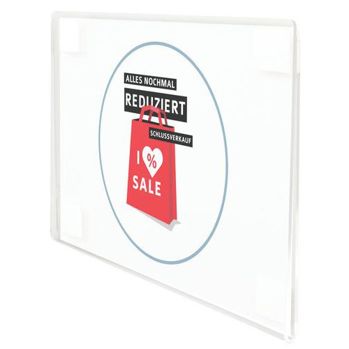 - Affichehouder Crystal met permanente en krachtige hechting, voor een stevige bevestiging op oppervlakken.