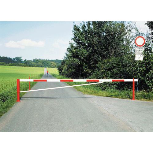 2 geïntegreerde boomsteunen. Doordacht systeem om te voorkomen dat mensen op de boom gaan zitten. Blokkering in open stand en sluiting met hangslot. De slagbomen van 4 tot 5,5 m zijn voorzien van een boomversterking. Gemaakt in Duitsland Klantgarantie : 3 jaar