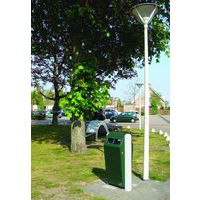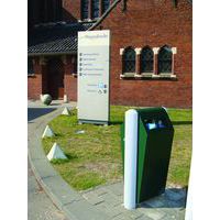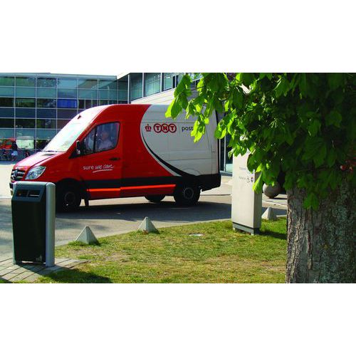 Robuust en vandalismebestendig. Deze afvalbak kan worden bevestigd tussen de aluminium bevestigingspalen in de vloer.
