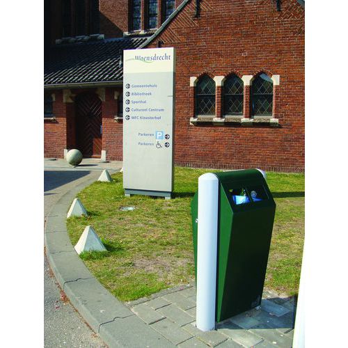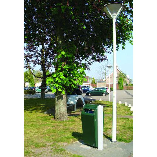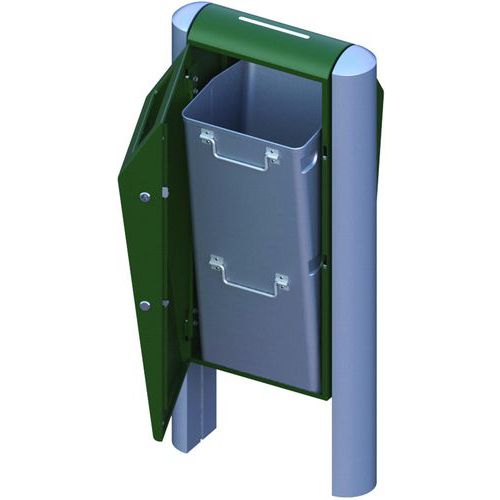 Afvalbak voor buiten, geweldig ontworpen van gegalvaniseerd staal met hoogwaardige thermolakcoating, met aan twee kanten een opening voor het weggooien.