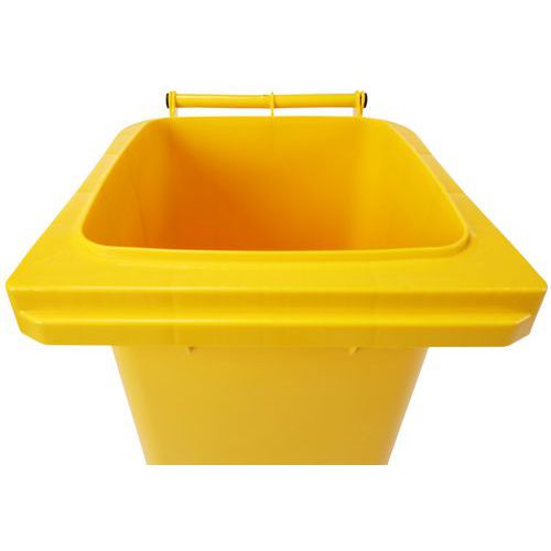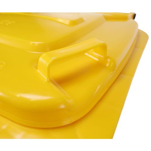 Praktische en eenvoudig te hanteren afvalcontainer dankzij de stevige handgrepen en wielen. Verschillende kleuren verkrijgbaar om het scheiden van afval en het identificeren van de inhoud te vereenvoudigen. Massieve wielen van 200 mm doorsnee. Van polyethyleen met hoge dichtheid van de beste klasse. UV- en schokbestendig. Container is bestand tegen chemische stoffen en is beschermd tegen schadelijke insecten. Neemt geen vloeistoffen op, is afwasbaar en te steriliseren.