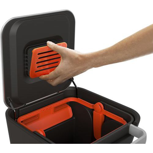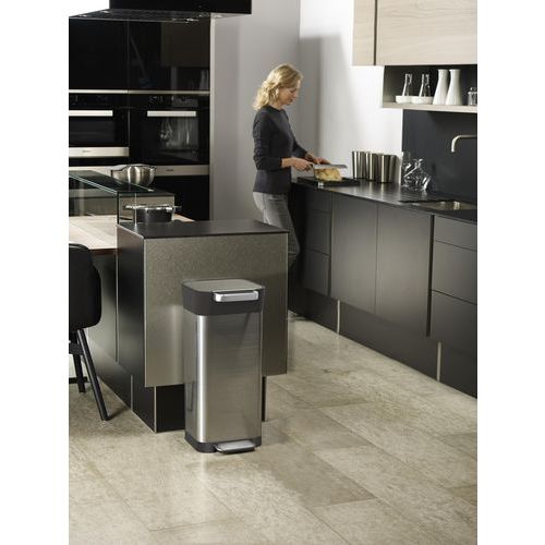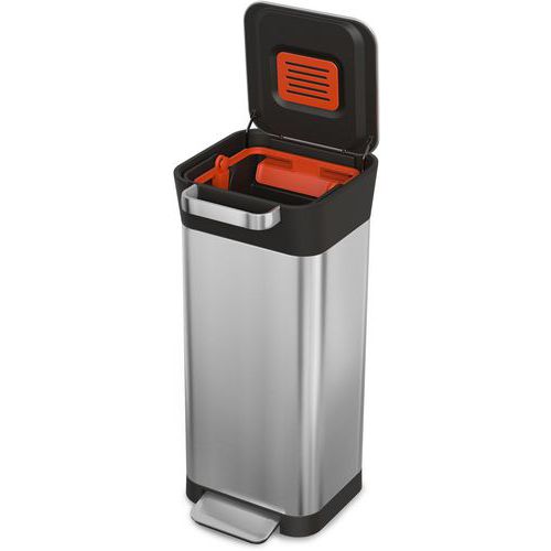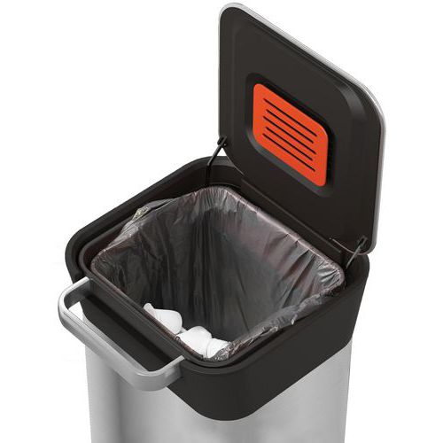 De Titan is voorzien van een stevig pedaal en een in het deksel geïntegreerd geurfilter. Smalle vorm, dus ruimtebesparend.