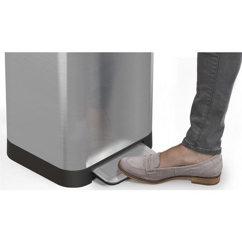 Stijlvolle pedaalemmer met ingebouwde, hygiënische afvalcompressor die het afval in de afvalbak aandrukt. Hierdoor kan er tot 3x zoveel afval in en hoeft de afvalzak minder vaak verwisseld te worden. Titan's gepatenteerde drukmechanisme zorgt ervoor dat het afval via een eenvoudige bediening van de handgreep gecomprimeerd wordt, zonder direct contact met het afval.