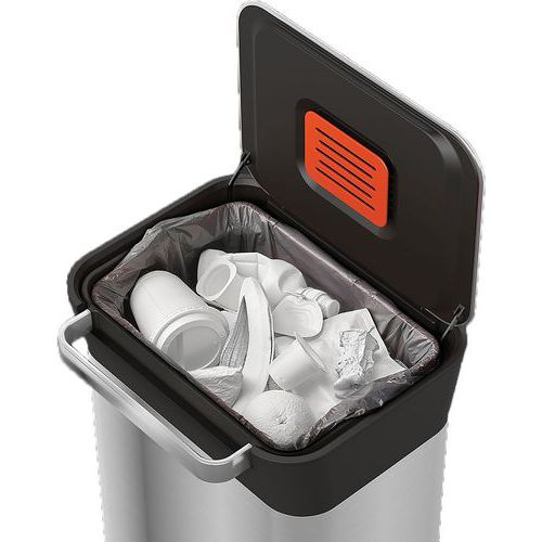 De Titan is voorzien van een stevig pedaal en een in het deksel geïntegreerd geurfilter.