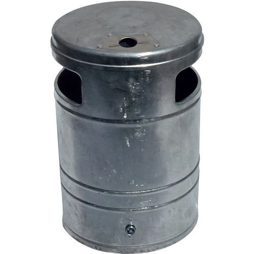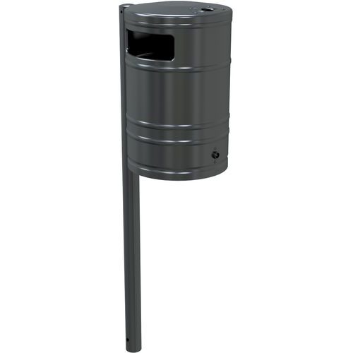 | Productnaam | Afvalbak met asbak en steunpaal, Totale inhoud: 40 L, Opening: Gleuf, Materiaal: Zink |