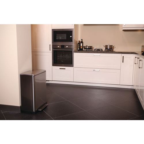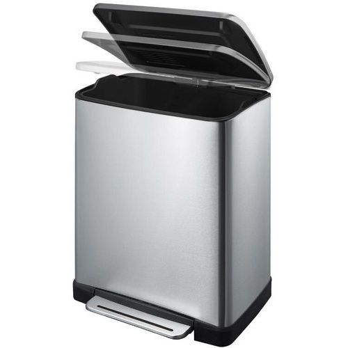 Afvalbak met pedaal E-Cube rechthoekig, Totale inhoud: 50 L, Opening: Met pedaal, Materiaal: Roestvrij staal