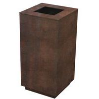 Afvalbak gemaakt van cortenstaalplaat, ontworpen om zeer lang mee te gaan zonder enige vorm van onderhoud.