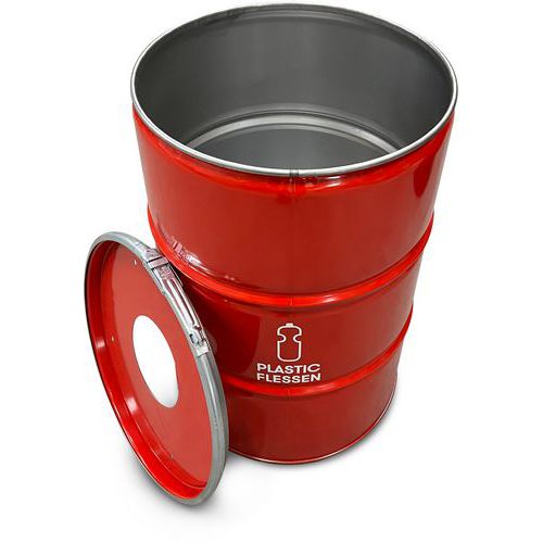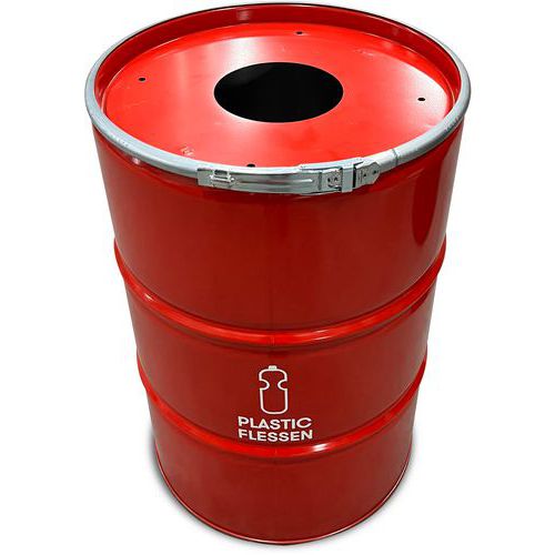 | Productnaam | Afvalbak Plastic met inwerpopening 200 liter, Totale inhoud: 200 L, Deksel kleur: Rood, Body kleur: Rood |