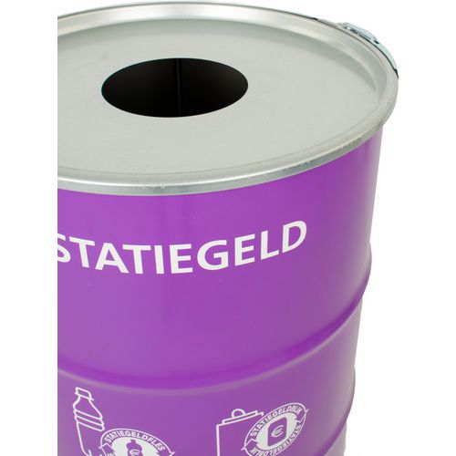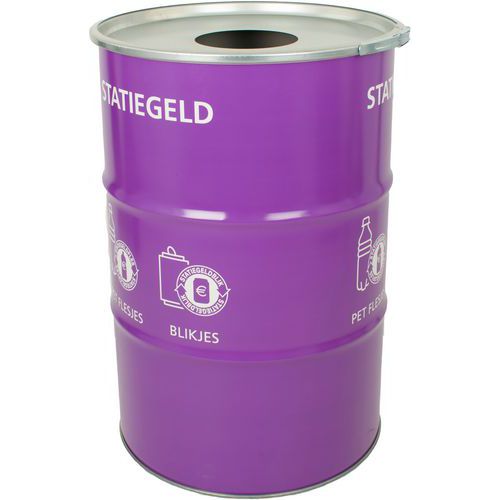 | Productnaam | Afvalbak Statiegeld met inwerpopening 200 liter, Totale inhoud: 200 L, Gewicht: 12 kg, Body kleur: Paars |