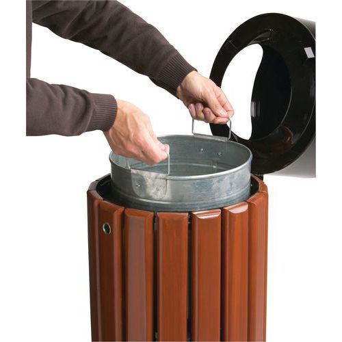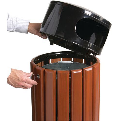| Productnaam | Afvalbak van metaal en van hout, Totale inhoud: 40 L, Aantal zakken: 1, Opening: Gleuf, Materiaal: Hout |