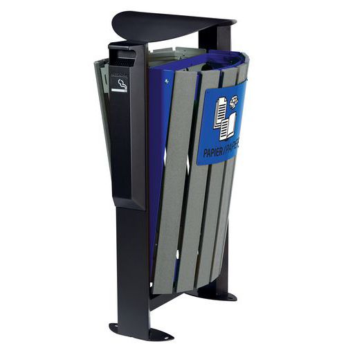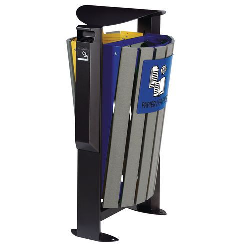 | Productnaam | Afvalbak voor afvalscheiding, Kleur: Grijs/geel, Hoogte: 101.5 cm, Breedte: 57.8 cm, Gewicht: 27 kg |