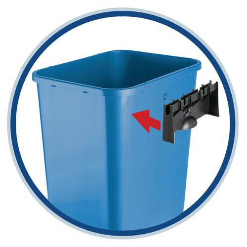 Afvalbak voor afvalscheiding (papier, kunststof, glas, bioafval). Rechthoekige vorm, neemt minimale ruimte in beslag. . Deksel met twee openingssystemen: met druk- of kantelmechanisme. . Bevestigingssysteem meegeleverd. Geschikt om een samenstelling te vormen. Geschikt voor afvalzakken van 50 liter. Beschikbaar in diverse kleuren.