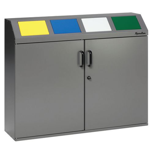 Afvalbak voor afvalscheiding brandwerend, Totale inhoud: 60 L, Opening: Duwen, Materiaal: Staal Afvalbak voor afvalscheiding brandwerend, Totale inhoud: 60 L, Opening: Duwen, Materiaal: Staal