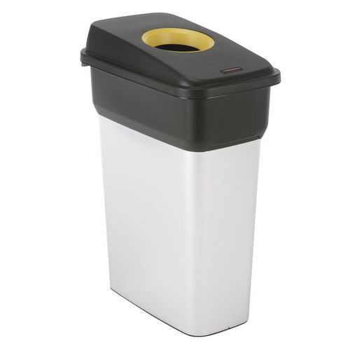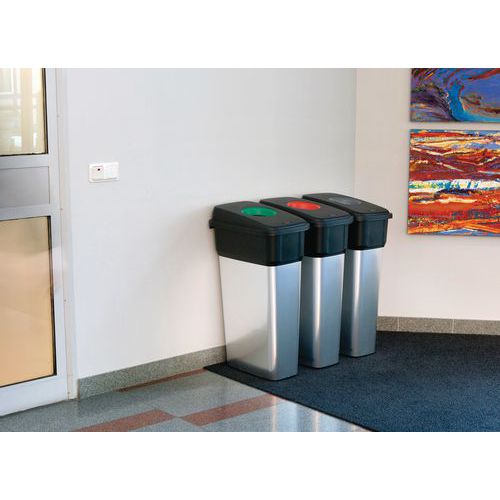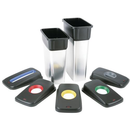 Vergeet niet om de deksels te bestellen, 3 uitvoeringen: met handgreep, voor papier of voor blikjes/flessen.