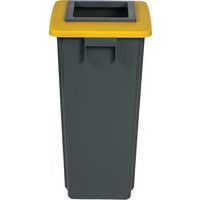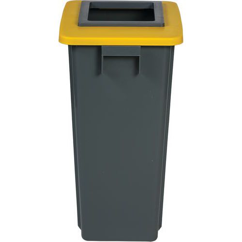 Rechthoekige afvalverzamelaar voor gebruik in kleine ruimtes. Eenvoudig te verplaatsen dankzij de handgrepen. Deze zeer praktische afvalbak is geschikt voor binnen. De kleuren van het deksel geven aan in welke bak het afval thuishoort.